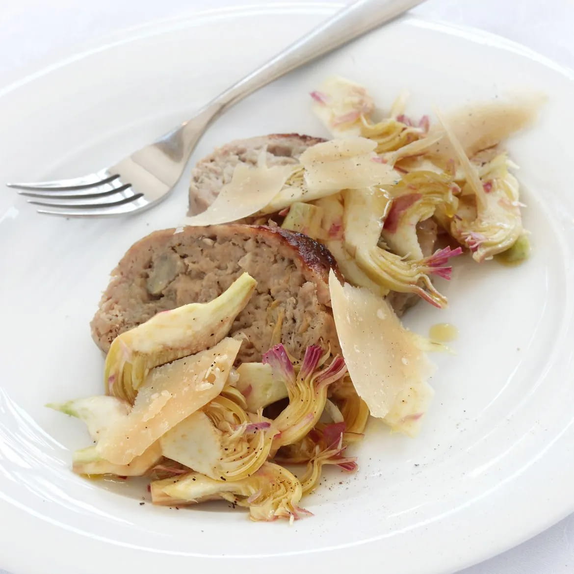 Der knusprige Artischockensalat wird den Geschmack des BonRolls hervorheben und zusammen mit den Grana-Spänen haben Sie alle Geschmacksrichtungen ausgeglichen.