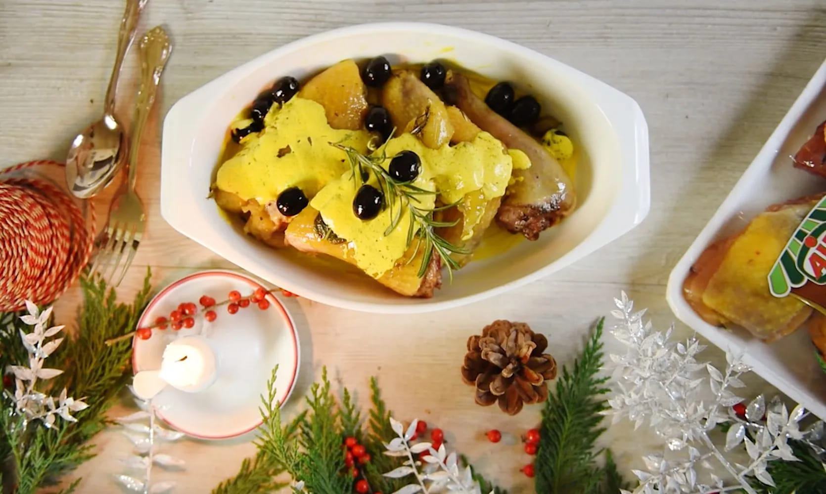 Servieren Sie das Perlhuhn alla cacciatora mit Safransauce nach einem Weihnachtsaperitif (hier sind einige leckere Cocktails zum Ausprobieren) und begleiten Sie es mit einem Glas Wein und einem Weihnachtsbeilage zum Fingerlecken!