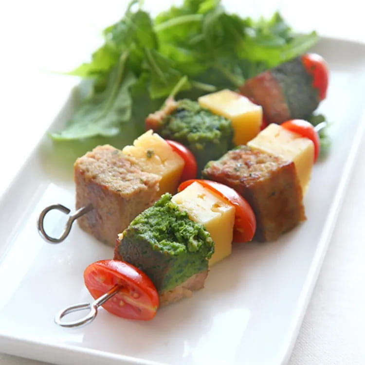 Schneiden Sie den BonRoll in etwa 4 cm große Würfel. Bestreichen Sie jeden Würfel mit Öl, panieren Sie sie mit Sesamsamen und braten Sie sie in einer sehr heißen Pfanne, bis sie auf jeder Seite gut gebräunt sind.