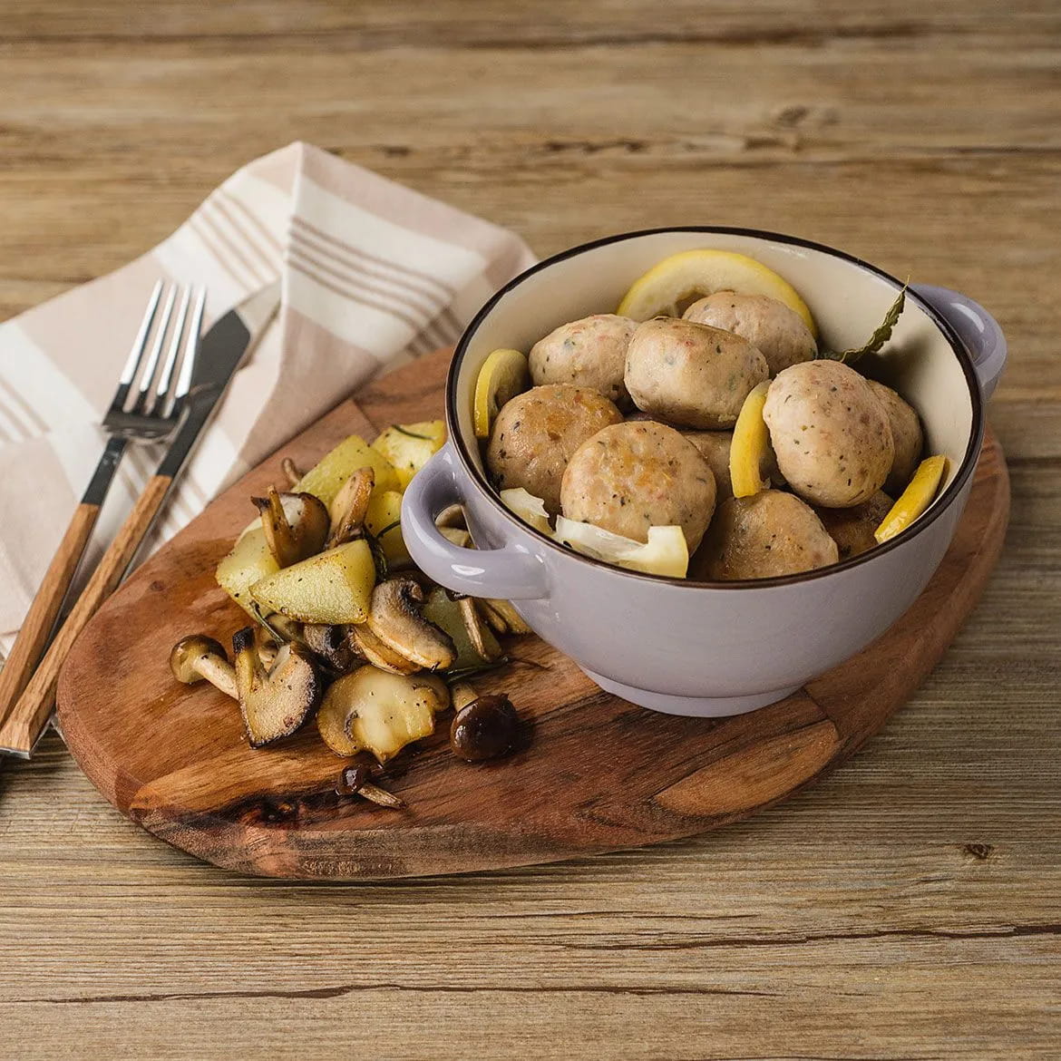 Serve the meatballs with the side of mushrooms and potatoes