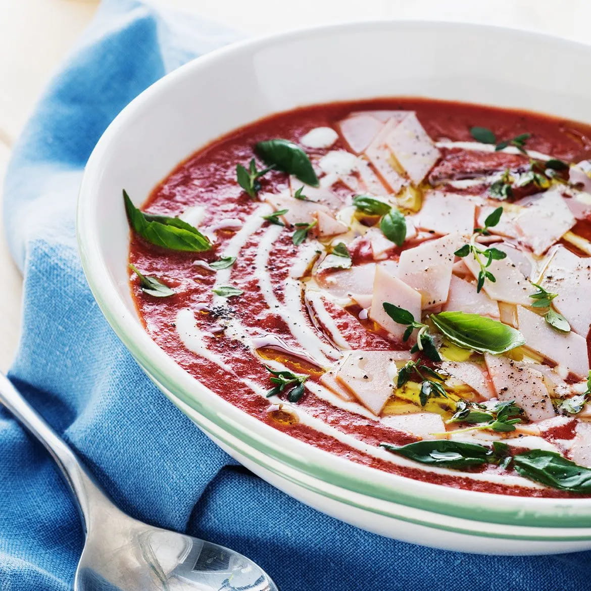 Soups always make us think of cold autumn evenings or, in general, the winter period: in this preparation, however, the tomato soup is cold and is flavored with AIA's AeQuilibrium Oven-Baked Turkey Breast, to become a perfect dish to enjoy in the summer period, because it's fresh and light.