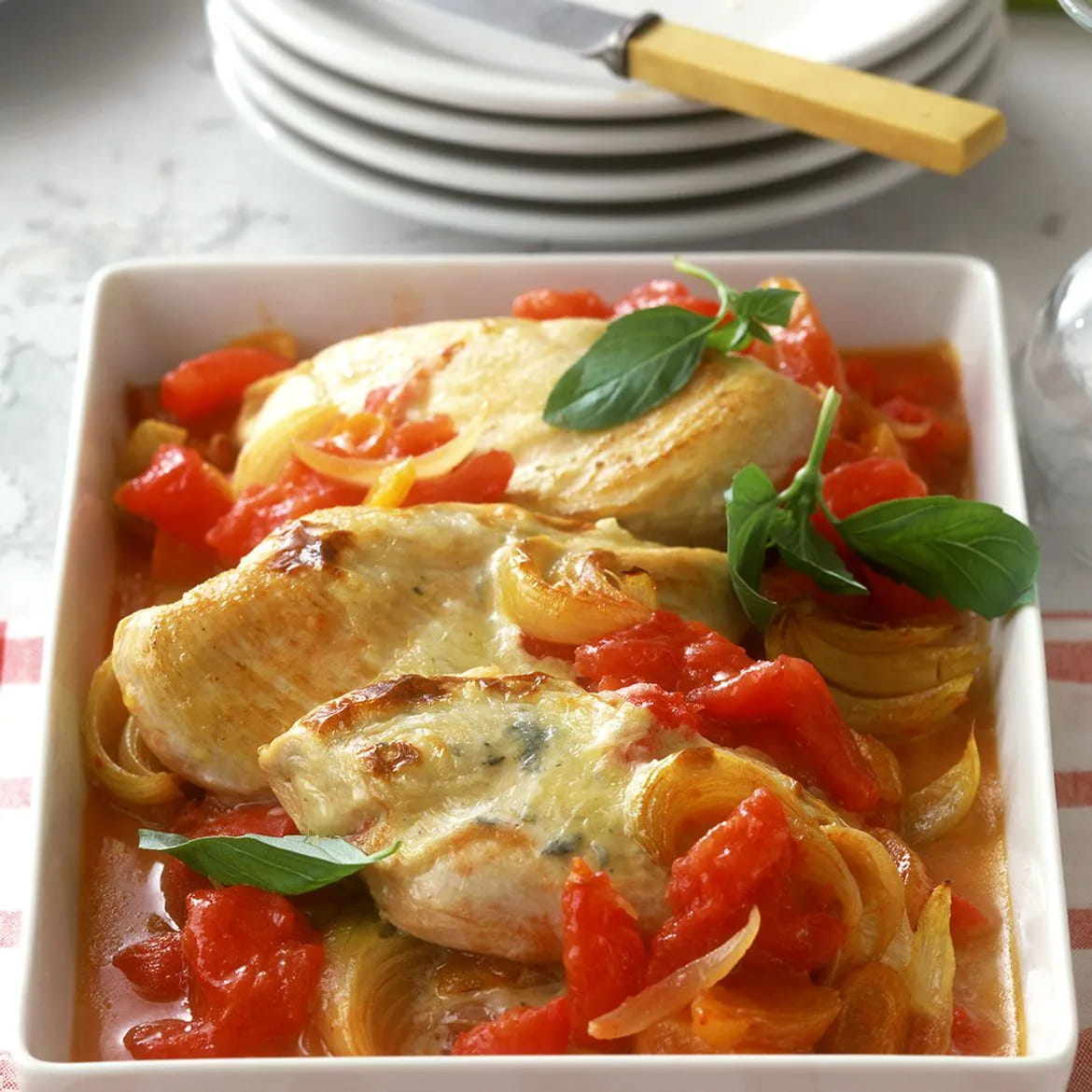 Here is the easy and quick recipe for Mediterranean turkey with tomatoes and basil!