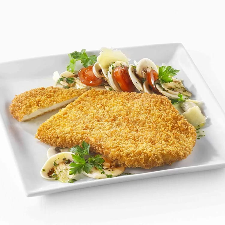 The result is a soft slice of chicken breast with a crispy coating, scented with parsley.