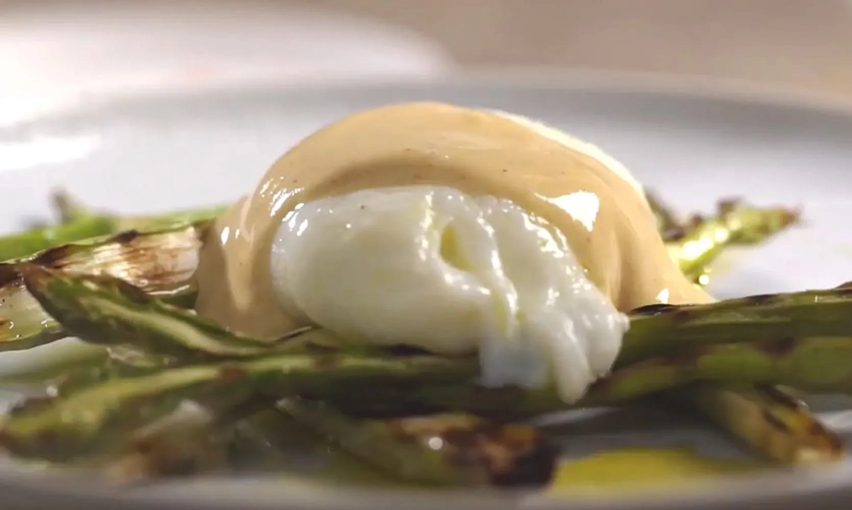 - Poached Eggs with Grilled Asparagus and Spicy Mayonnaise