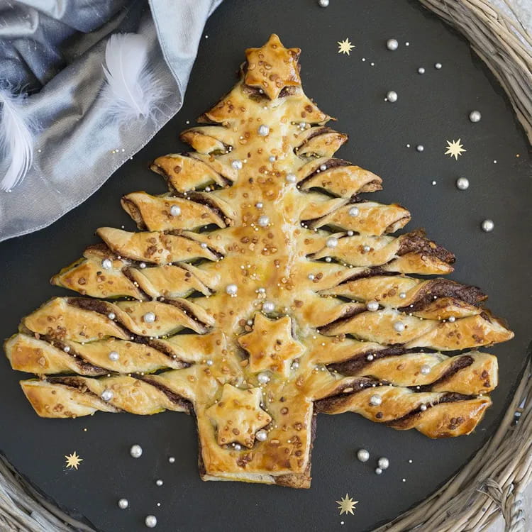 You can choose to prepare a Christmas tree in puff pastry entirely salty or entirely sweet, but the mix of flavors will immediately captivate all your guests.