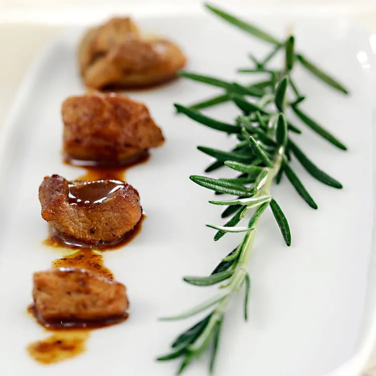 After the cooking time, adjust the salt and add a few tablespoons of grain mustard. Plate the peppers with the turkey, decorating with sprigs of thyme and bay leaves.