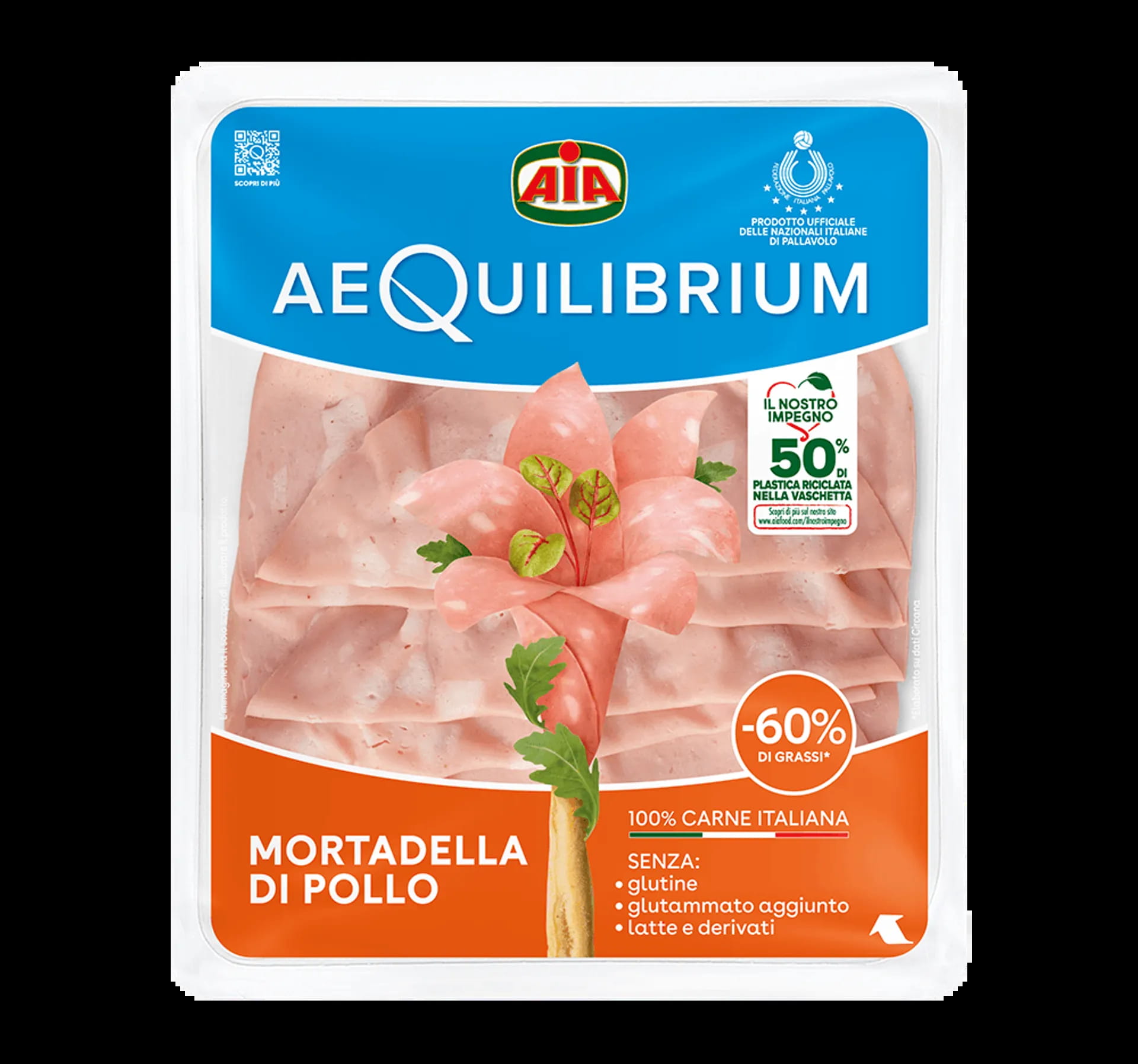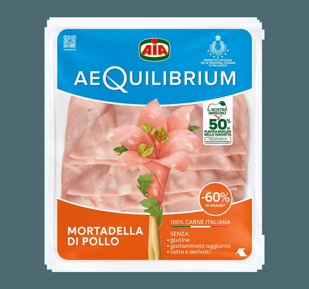 Scopri il pratico nuovo formato da 100g della nostra mortadella di pollo AeQuilibrium. Fette sottili dal sapore e profumo intenso. Senza glutine. Senza glutammato aggiunto. Senza latte e derivati.