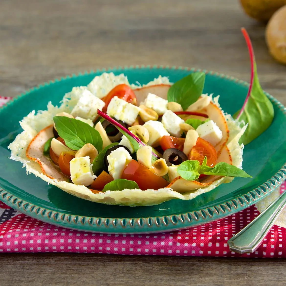 Stanchi della solita insalata? Perché non provate qualcosa di diverso e buonissimo come l’insalata di aeQuilibrium alla paprika dolce in cialda? Si tratta di una ricetta davvero semplice da preparare, che renderà più bella e più sfiziosa una semplice insalata leggera, in un mix di croccantezza e delicatezza, conferitogli dall’unione di aeQuilibrium alla paprika dolce AIA con il cestino croccante a base di parmigiano. Potete gustare questo piatto per un pranzo veloce o durante una cena galante per stupire la vostra dolce metà con qualcosa di originale e allo stesso tempo leggero.