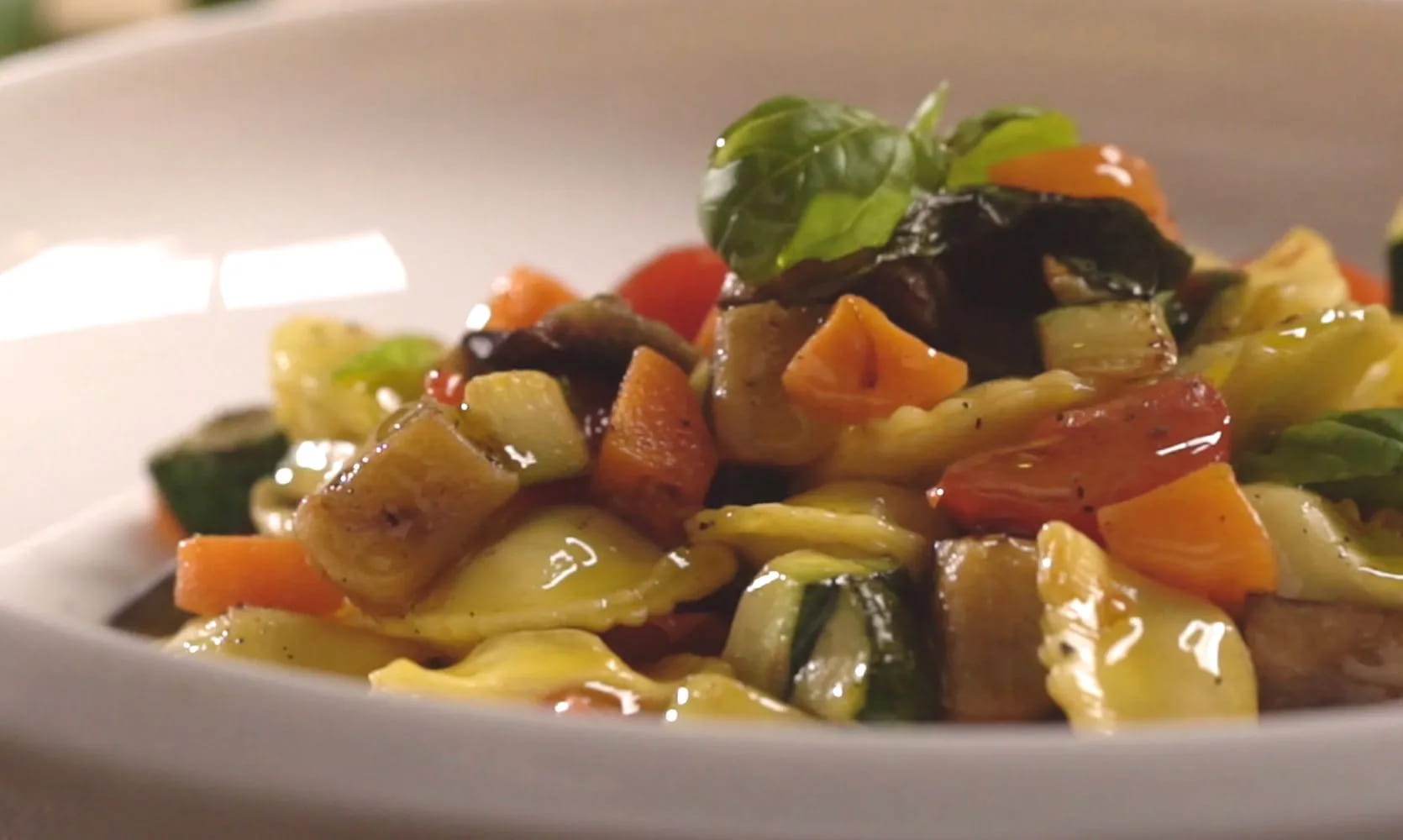 - Raviolini ripieni di pollo e prosciutto al ragù di primavera