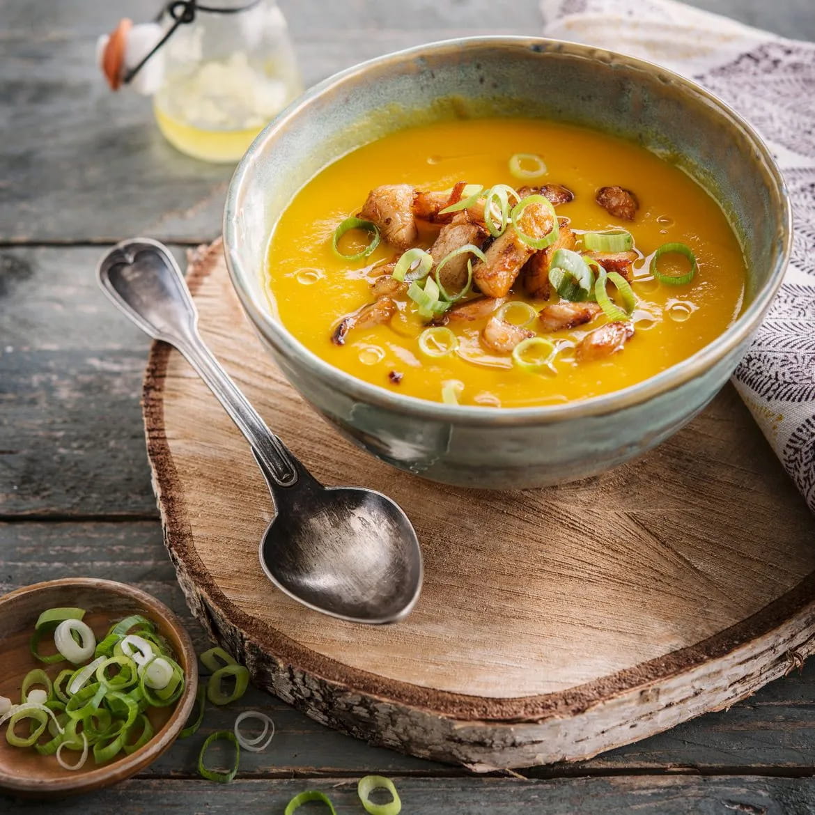 Per preparare la vellutata leggera con bocconcini di pollo ci affidiamo al sapore dolce e delicato della zucca e alla morbidezza delle patate. La vellutata alla zucca è sicuramente una delle ricette invernali più indicate per preparare questo ortaggio in modo semplice e veloce. La ricetta della vellutata leggera con bocconcini di pollo è l’ideale per una cena appetitosa in grado di scaldarci dopo una lunga giornata di lavoro. La crema di zucca vi coccolerà con la sua dolcezza: abbiamo deciso poi di esaltarne tutti i sapori, aggiungendo dei tenerissimi bocconcini di pollo.